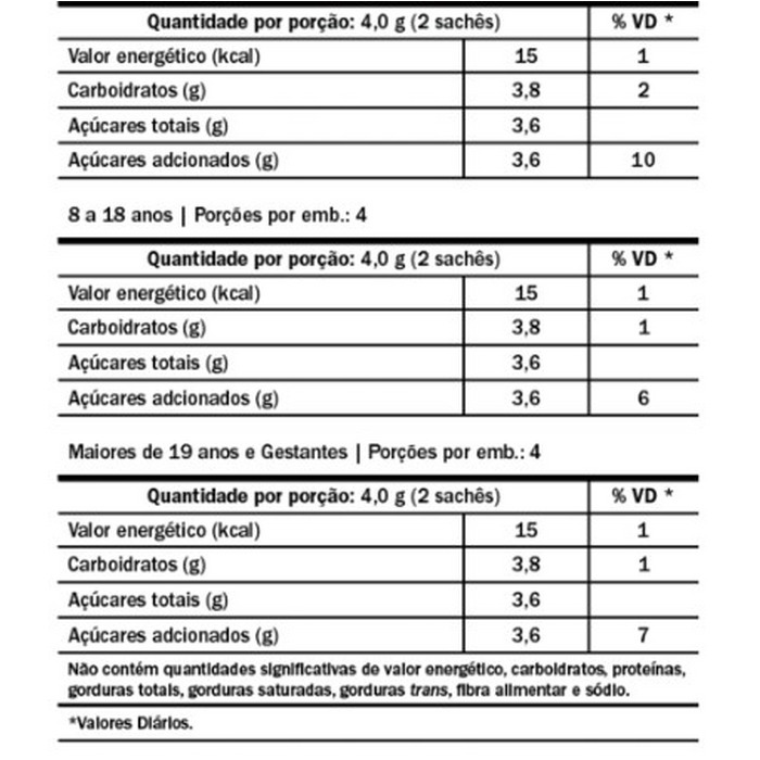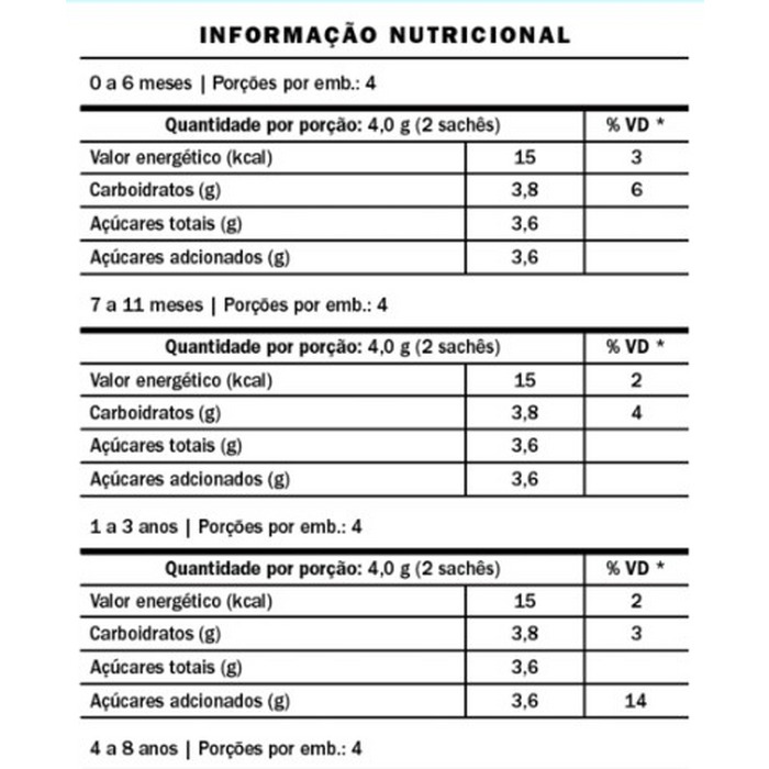 USO PEDIÁTRICO (0 a 6 meses, 7 a 11 meses, 1 a 3 anos, 4 a 8 anos, 9 a 18 anos), ADULTOS (maiores de 19 anos), LACTANTES E GESTANTES.